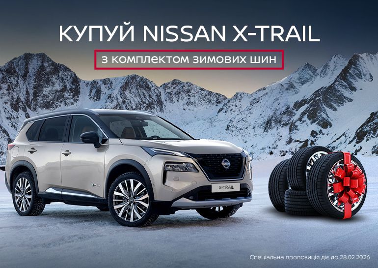 У лютому року для Nissan X-Trail e-POWER діє спеціальна пропозиція — у авто з технологією e-POWER додатково включено комплект зимових шин