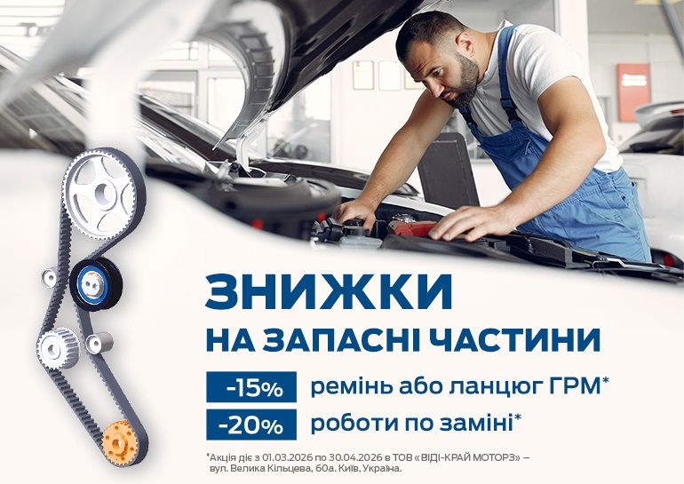 *Акція діє з 01.03.2026 по 30.04.2026 в ТОВ «ВІДІ-КРАЙ МОТОРЗ» – вул. Велика Кільцева, 60а. Київ, Україна за наступних умов: Надається фізичним та юридичним особам, не може сумуватися з іншими акційними пропозиціями, нараховується у разі достатньої націнки на товари та послуги.